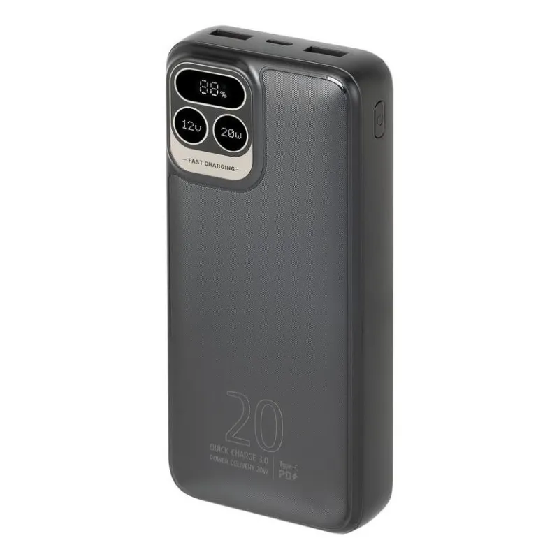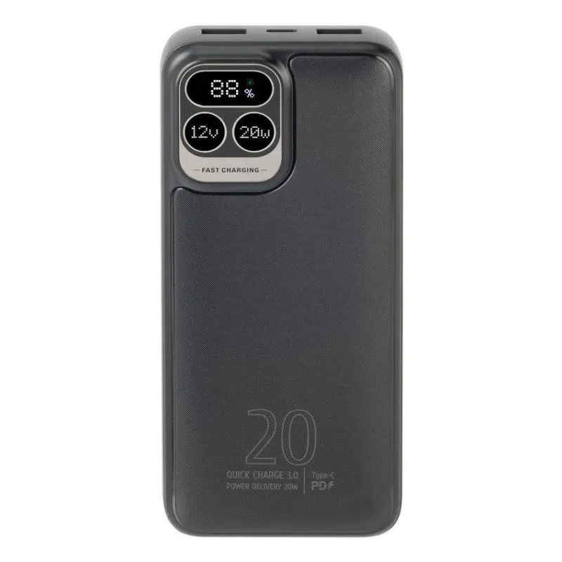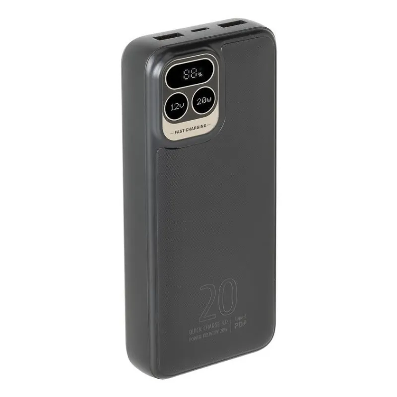 Lithium Polymer (LiPo) , Capacity 20000 mAh , Battery capacity 74 Wh , USB Power Delivery up to 20 W , 2xNumber of simultaneously connected devices (max) , Colour Grey , Charger compatibility Mobile phone/Smartphone,Notebook/Netbook , Built-in display Yes , Input interface USB Type-C , Output voltage 5 V , Weight 405 g , Product Net Weight 0.405 kg