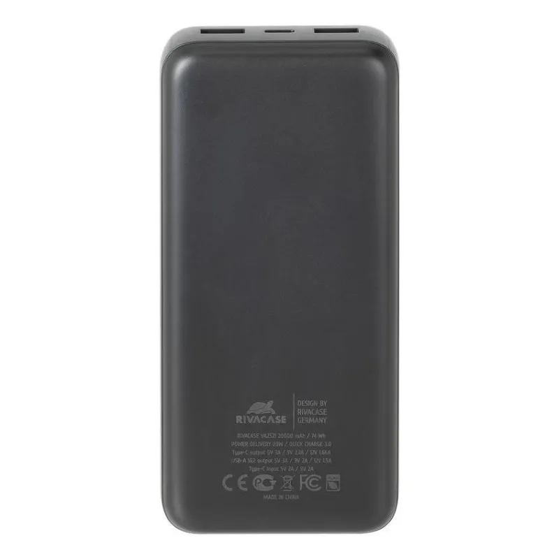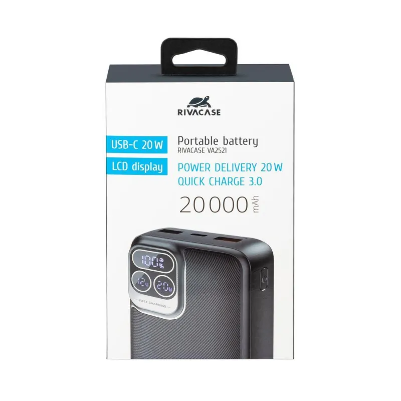 - RIVACASE VA2521. BATTERY CAPACITY: 20000 MAH, BATTERY TECHNOLOGY: LITHIUM POLYMER (LIPO). USB TYPE-A OUTPUT PORTS: 2, USB TYPE-C PORTS QUANTITY: 1. PRODUCT COLOUR: GREY