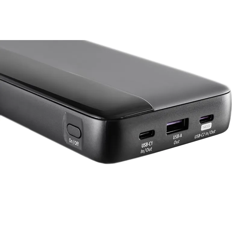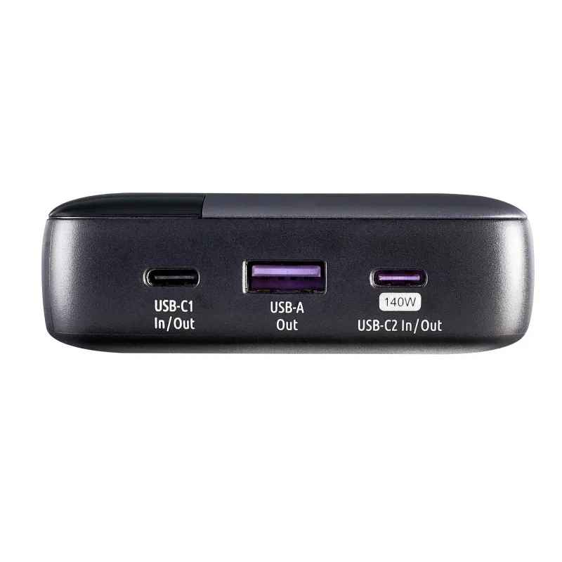Lithium-Ion (Li-Ion) , Capacity 25000 mAh , Fast charging Yes , USB Power Delivery up to 140 W , 3xNumber of simultaneously connected devices (max) , Colour Black/Grey , Charger compatibility Universal , Built-in display Yes , Total output power 140 W , Weight 516 g , Cables included USB Type-C to USB Type-C , Travel pouch Yes , Product Net Weight 0.516 kg