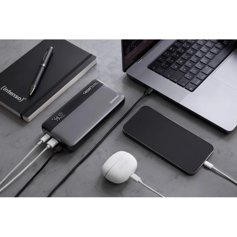 - INTENSO 7350060. BATTERY CAPACITY: 25000 MAH, BATTERY TECHNOLOGY: LITHIUM-ION (LI-ION), FAST CHARGING TECHNOLOGY: POWER DELIVERY. USB TYPE-A OUTPUT PORTS: 1, USB TYPE-C PORTS QUANTITY: 2. TOTAL OUTPUT POWER: 140 W. PRODUCT COLOUR: BLACK, GREY