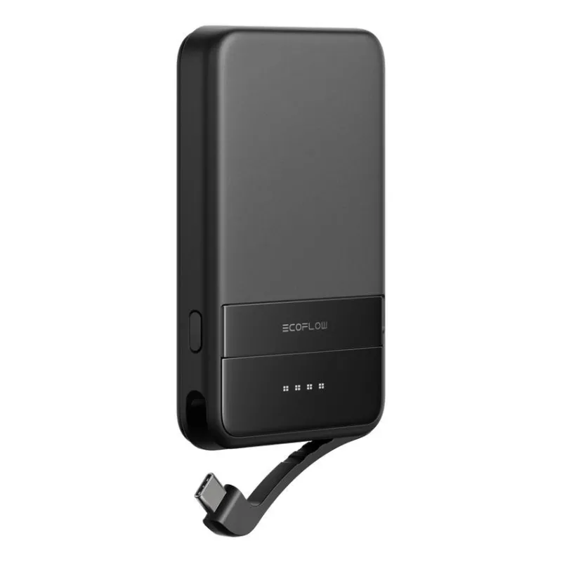 - ECOFLOW RAPID. BATTERY CAPACITY: 5000 MAH, BATTERY TECHNOLOGY: LITHIUM-ION (LI-ION), FAST CHARGING TECHNOLOGY: POWER DELIVERY, BATTERY VOLTAGE: 3.7 V. USB TYPE-C PORTS QUANTITY: 1. WIRELESS CHARGING. TOTAL OUTPUT POWER: 30 W. PRODUCT COLOUR: BLACK