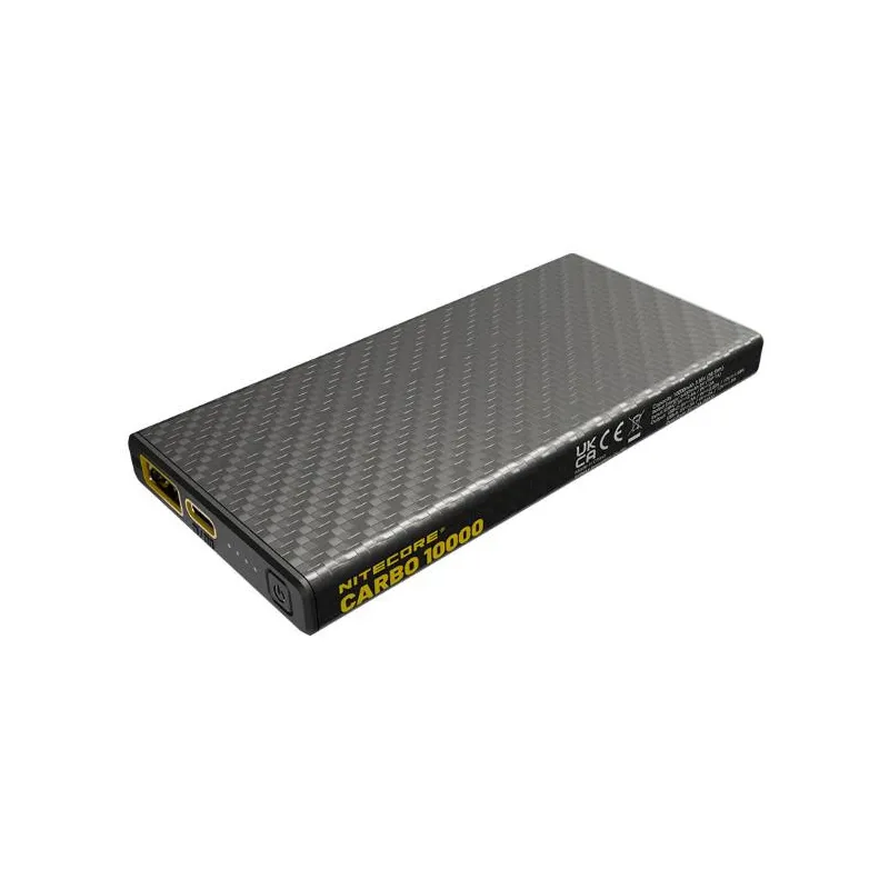 - NITECORE CARBO 10000. BATTERY CAPACITY: 10000 MAH, BATTERY TECHNOLOGY: LITHIUM-ION (LI-ION), FAST CHARGING TECHNOLOGY: POWER DELIVERY, BATTERY VOLTAGE: 3.85 V. USB TYPE-A OUTPUT PORTS: 1, USB TYPE-C PORTS QUANTITY: 1. TOTAL OUTPUT POWER: 38 W, OUTPUT CURR
