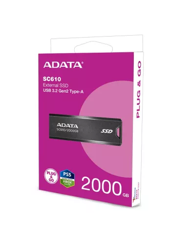 External SSD, ADATA, SC610, 2TB, USB 3.2, Write speed 500 MBytes/sec, Read speed 550 MBytes/sec, SC610-2000G-CBK/RD