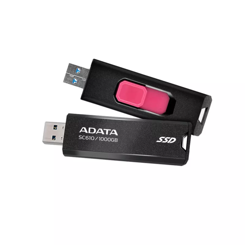 ADATA SC610. SSD CAPACITY: 1 TB. USB CONNECTOR: USB TYPE-A, USB VERSION: 3.2 GEN 2 (3.1 GEN 2). READ SPEED: 550 MB/S, WRITE SPEED: 500 MB/S. DATA TRANSFER RATE: 10 GBIT/S. PRODUCT COLOUR: BLACK