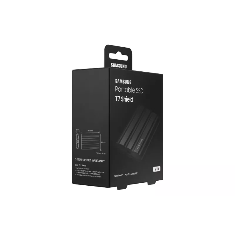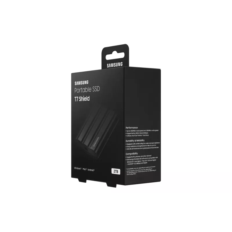 SAMSUNG MU-PE2T0S. SSD CAPACITY: 2 TB. USB CONNECTOR: USB TYPE-C, USB VERSION: 3.2 GEN 2 (3.1 GEN 2). READ SPEED: 1050 MB/S, WRITE SPEED: 1000 MB/S. PASSWORD PROTECTION. PRODUCT COLOUR: BLACK