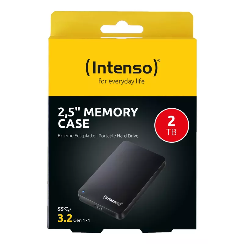 - INTENSO 2TB 2.5" MEMORY CASE USB 3.0. HDD CAPACITY: 2 TB, HDD SIZE: 2.5". USB VERSION: 3.2 GEN 1 (3.1 GEN 1). HDD SPEED: 5400 RPM, READ SPEED: 85 MB/S, WRITE SPEED: 75 MB/S. PRODUCT COLOUR: BLACK