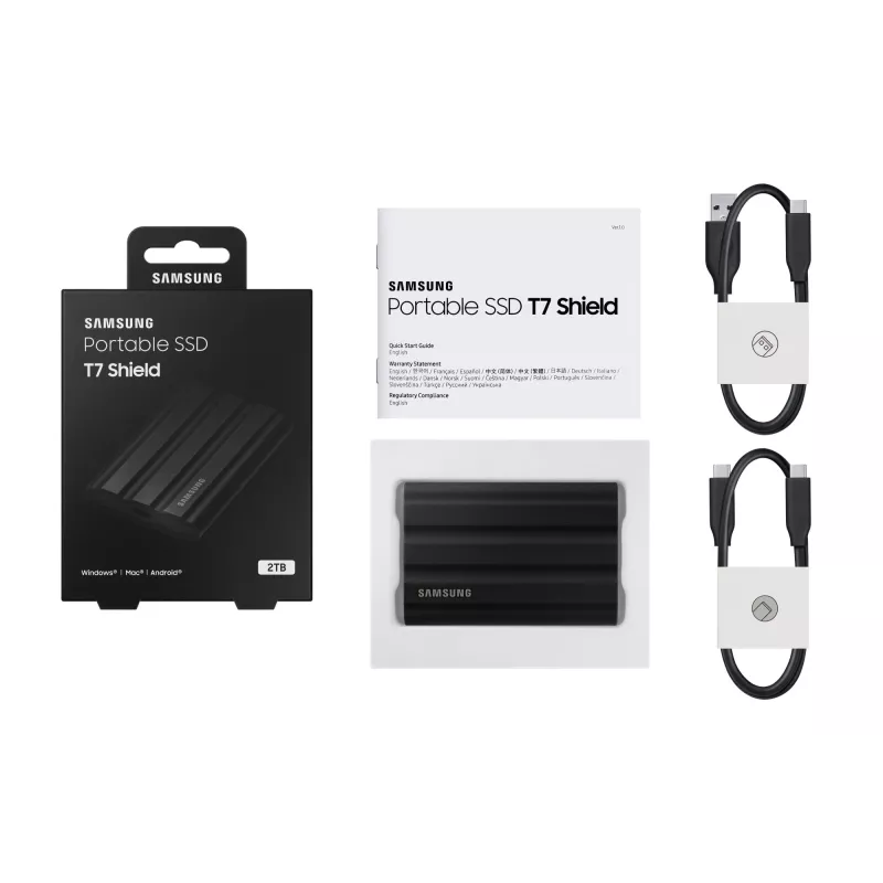 SAMSUNG MU-PE2T0S. SSD CAPACITY: 2 TB. USB CONNECTOR: USB TYPE-C, USB VERSION: 3.2 GEN 2 (3.1 GEN 2). READ SPEED: 1050 MB/S, WRITE SPEED: 1000 MB/S. PASSWORD PROTECTION. PRODUCT COLOUR: BLACK