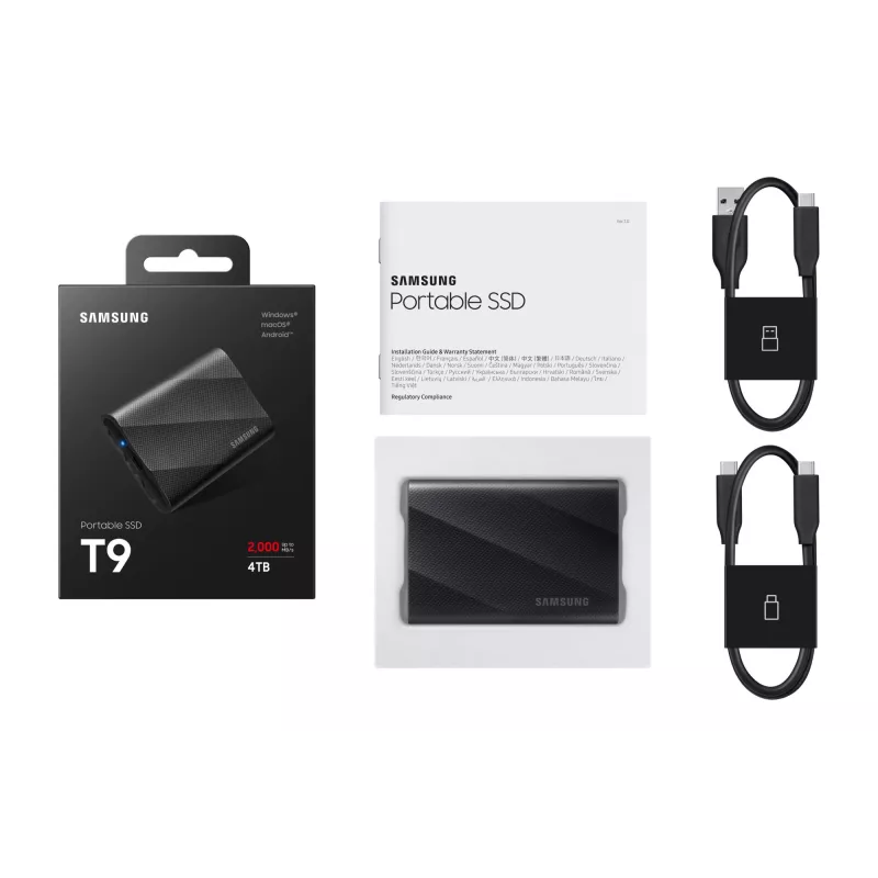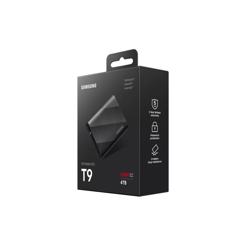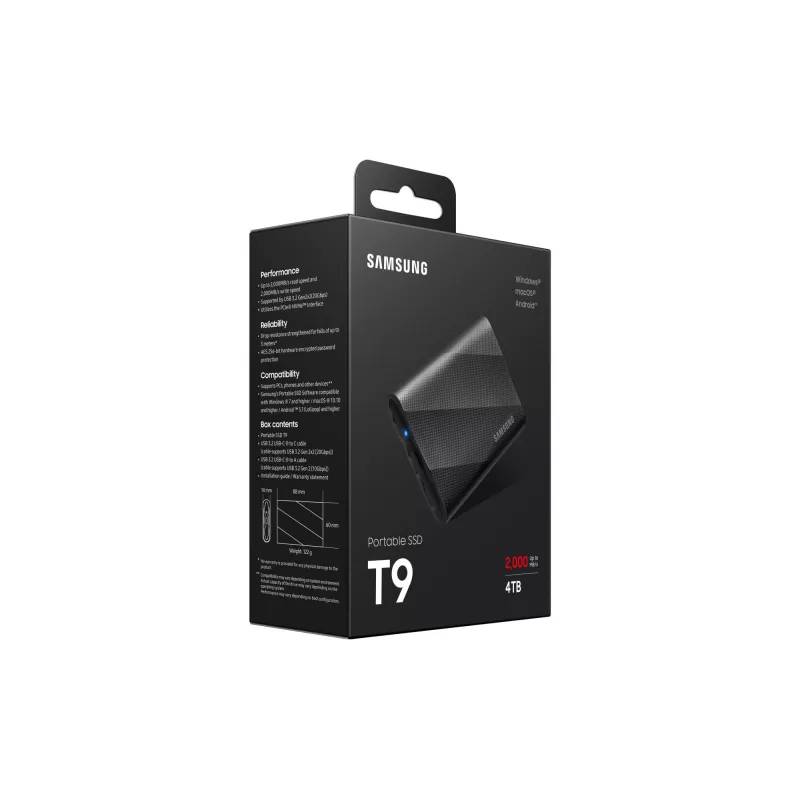 External SSD, SAMSUNG, T9, 4TB, USB 3.2, Write speed 2000 MBytes/sec, Read speed 2000 MBytes/sec, MU-PG4T0B/EU