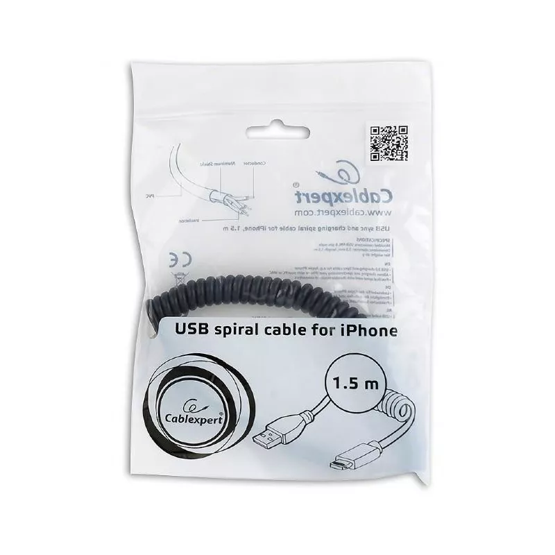 CABLE LIGHTNING TO USB2 1.5M/SPIRAL CC-LMAM-1.5M GEMBIRD