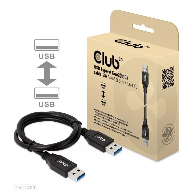 CABLE USB3.1 3A 0.5M/M/M CAC-1409 CLUB3D
