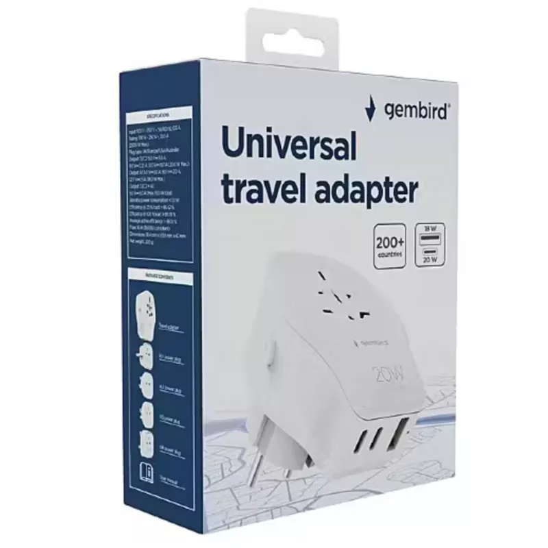 POWER ADAPTER TRAVEL 20W/WHITE TPA-1A2C20-02-W GEMBIRD