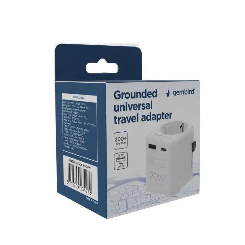 POWER ADAPTER GROUNDED 20W/WHT TPA-EU1A1C20-01-W GEMBIRD