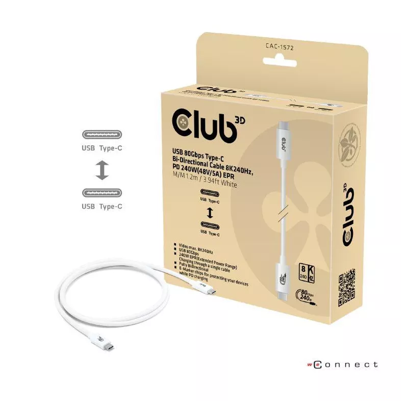 CABLE USB-C TO USB-C 1.2M/WHITE CAC-1572 CLUB3D