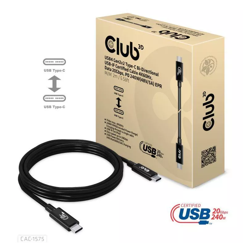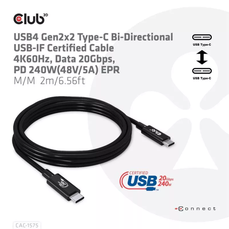 CABLE USB-C TO USB-C 2M/M/M CAC-1575 CLUB3D