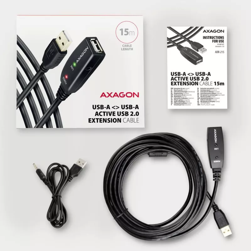 CABLE USB2.0 A-M/A-F ACTIVE/15M ADR-215 AXAGON