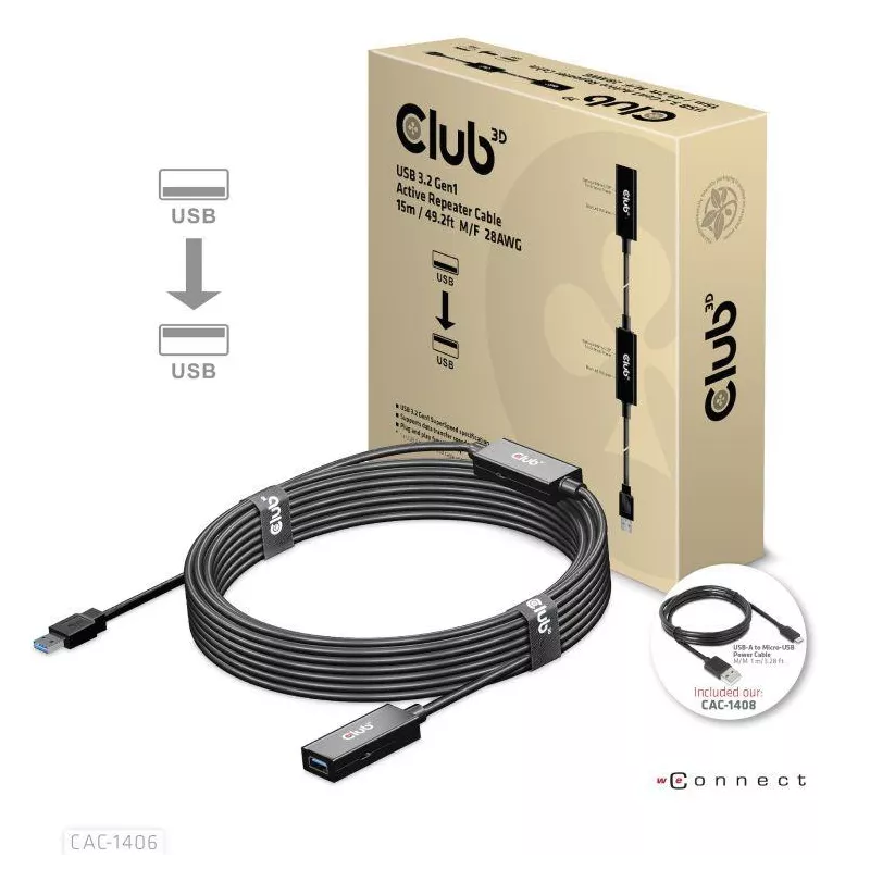 CABLE USB3.2 REPEATER 15M/M/F CAC-1406 CLUB3D