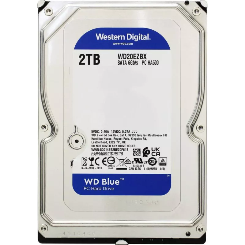 HDD, WESTERN DIGITAL, Blue, 2TB, SATA 3.0, 256 MB, 7200 rpm, 3,5", WD20EZBX