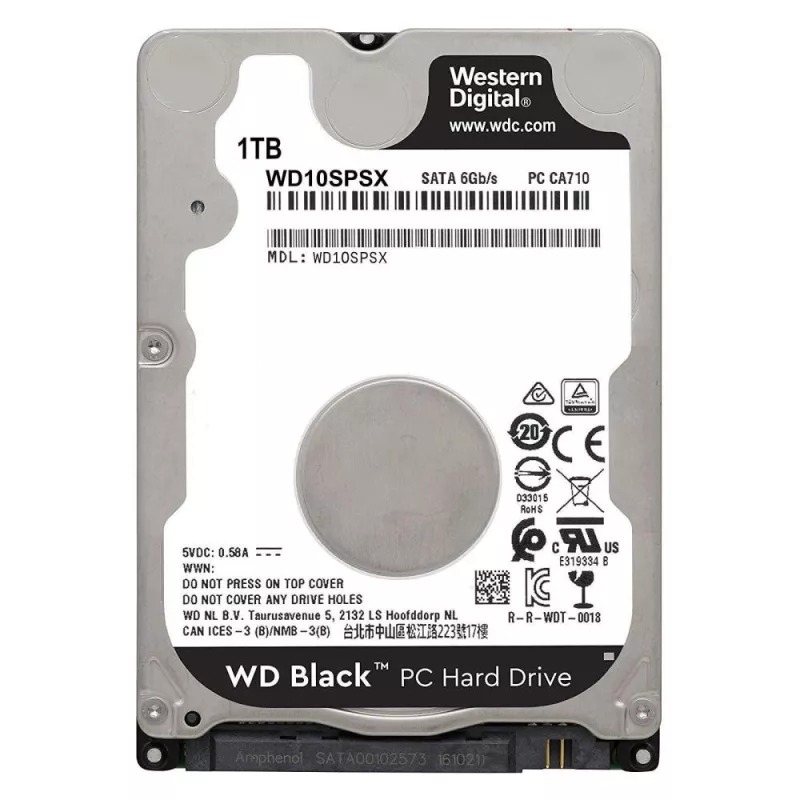 HDD, WESTERN DIGITAL, Black, 1TB, SATA, SATA 3.0, 64 MB, 7200 rpm, 2,5", WD10SPSX