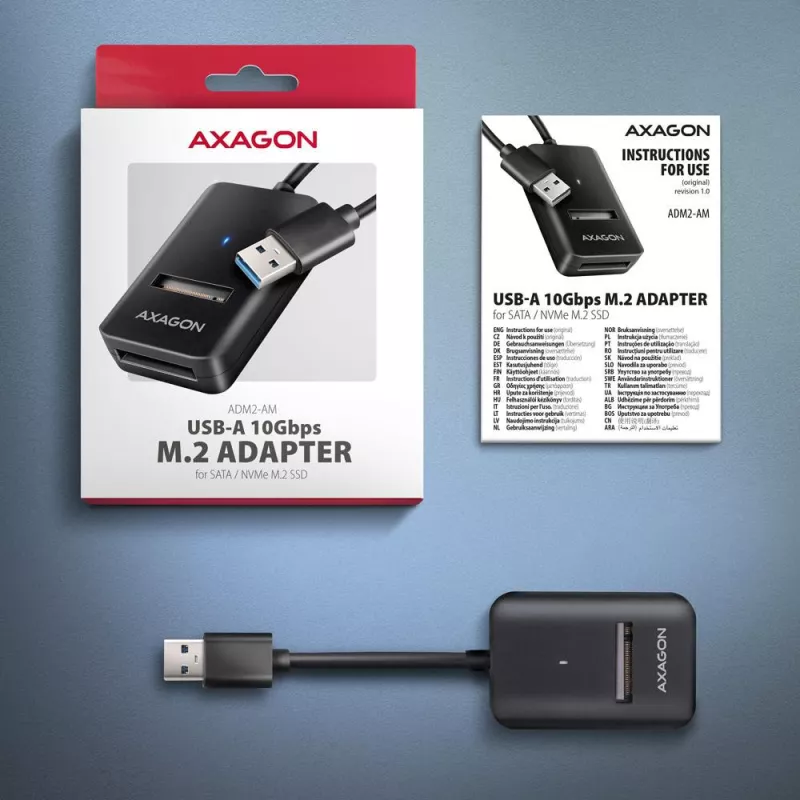 SSD ACC ADAPTER USB3.2/M.2/10GBPS 0.1M ADM2-AM AXAGON