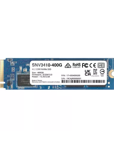 SSD, SYNOLOGY, SNV3400, 400GB, M.2, PCIE, NVMe, Write speed 750 MBytes/sec, Read speed 3000 MBytes/sec, TBW 491 TB, MTBF 180000