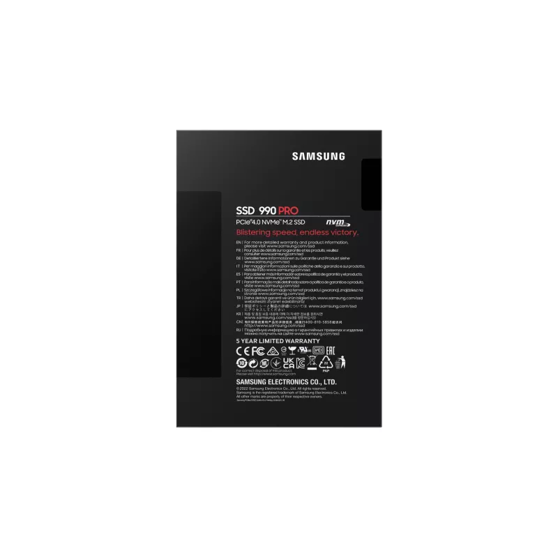 SSD series 990 PRO , 2000 GB , M.2 , PCI Express 4.0 , NVMe Yes , 2.0 , Component for PC , Write speed 6900 MB/s , Read speed 7450 MB/s , Mean time between failures (MTBF) 1500000 h , Weight 9 g , Operating temperature (T-T) 0 - 70 °C