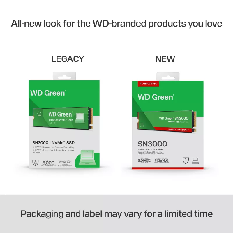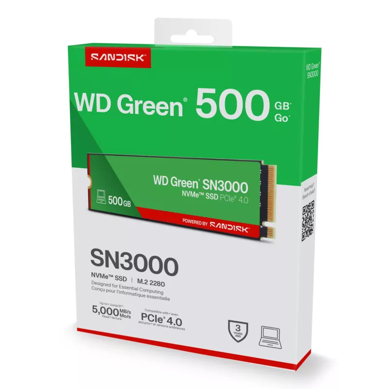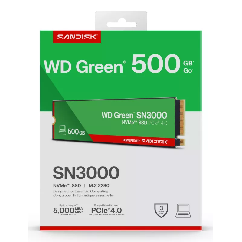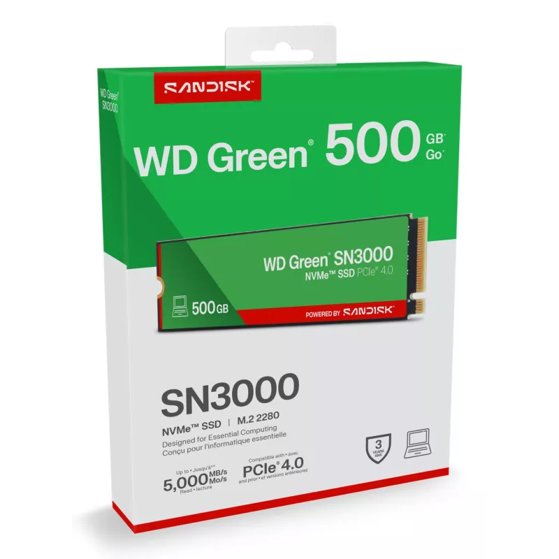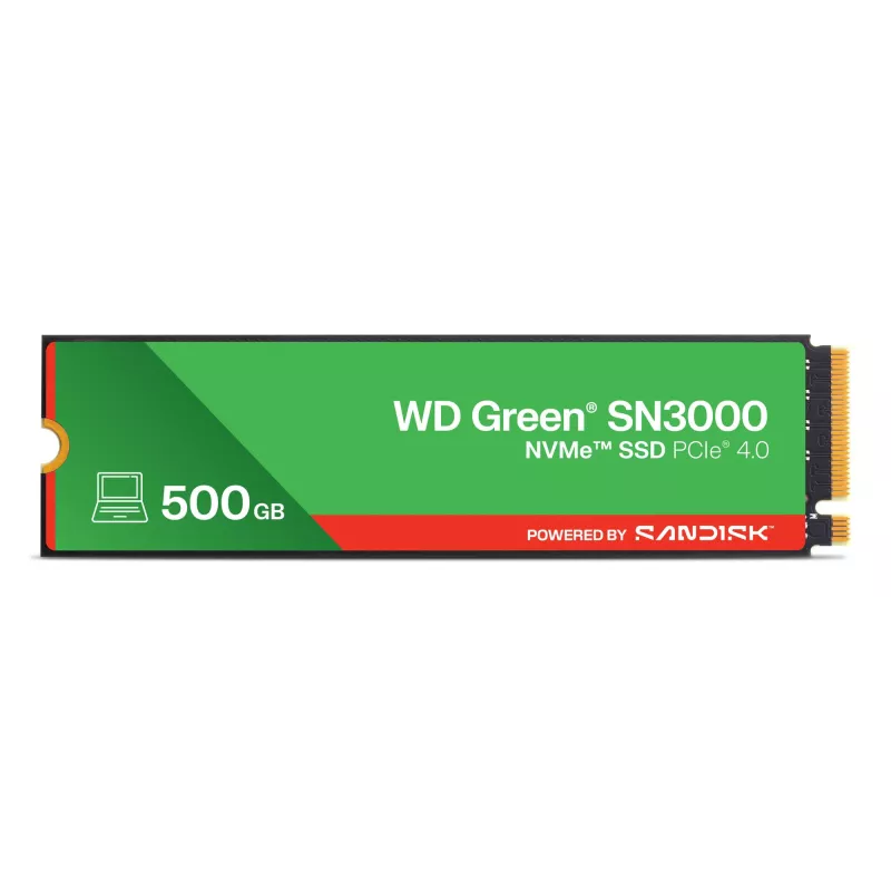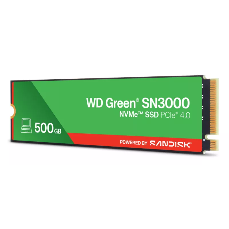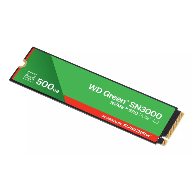 - SANDISK GREEN WD &TRADE SN3000 NVME&TRADE SSD POWERED BY 500 GB. SSD CAPACITY: 500 GB, SSD FORM FACTOR: M.2, COMPONENT FOR: PC/NOTEBOOK/GAME CONSOLE