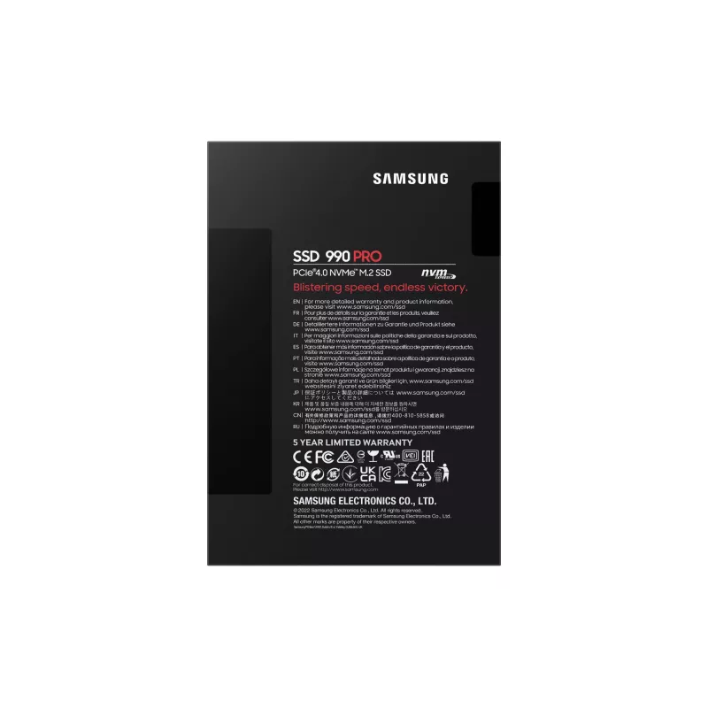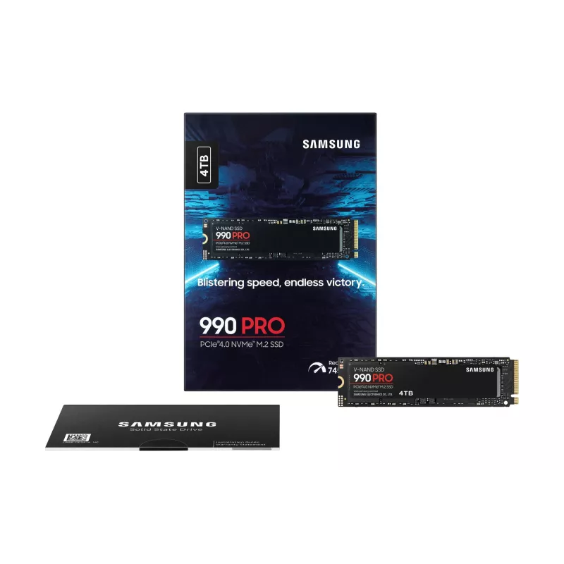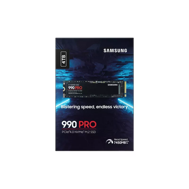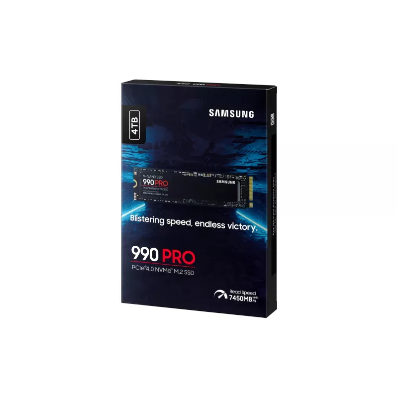 - SAMSUNG 990 PRO. SSD CAPACITY: 4 TB, SSD FORM FACTOR: M.2, READ SPEED: 7450 MB/S, WRITE SPEED: 6900 MB/S, COMPONENT FOR: PC