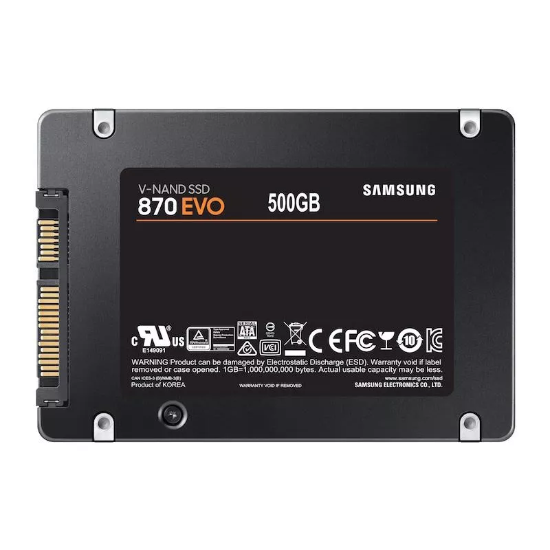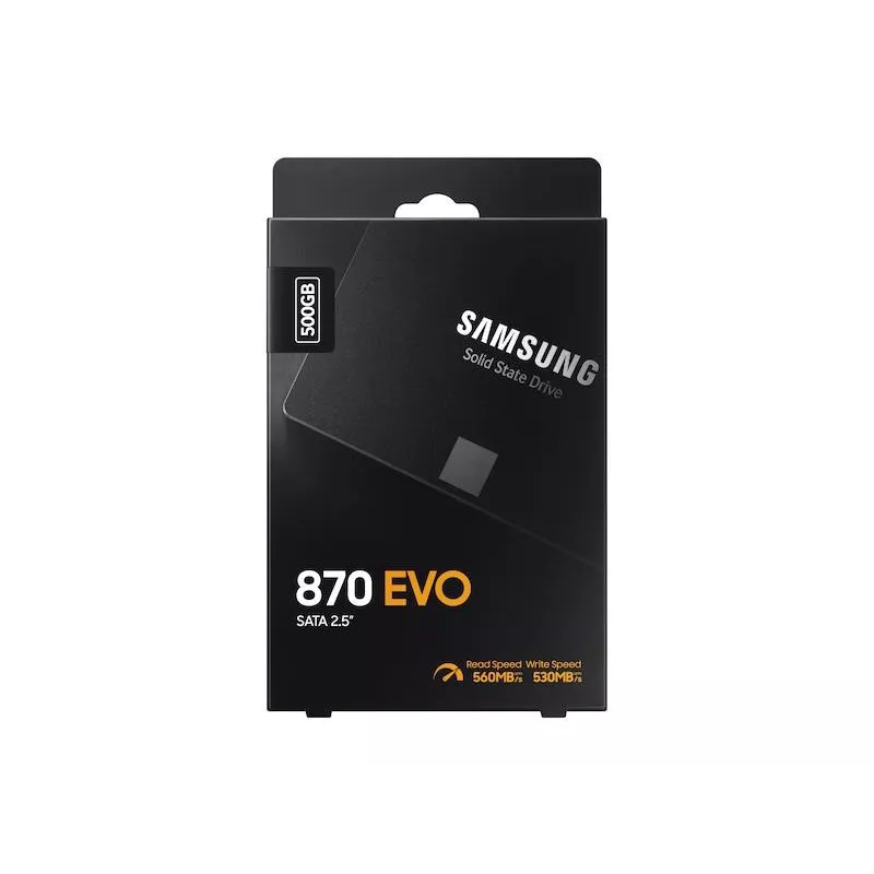 - SAMSUNG 870 EVO. SSD CAPACITY: 500 GB, SSD FORM FACTOR: 2.5", READ SPEED: 560 MB/S, WRITE SPEED: 530 MB/S, DATA TRANSFER RATE: 6 GBIT/S, COMPONENT FOR: PC