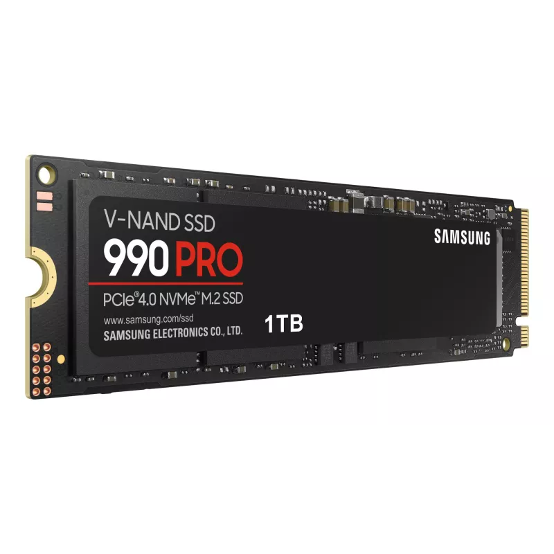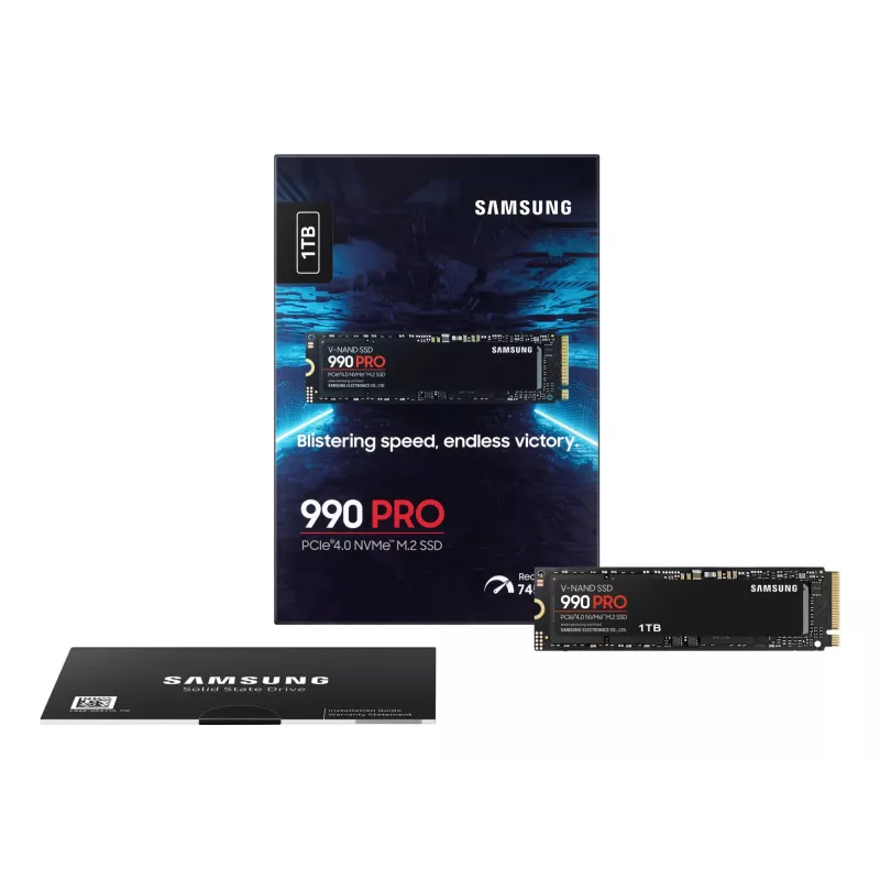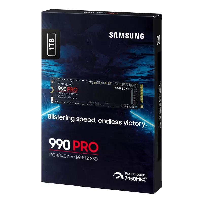- SAMSUNG 990 PRO. SSD CAPACITY: 1 TB, SSD FORM FACTOR: M.2, READ SPEED: 7450 MB/S, WRITE SPEED: 6900 MB/S, COMPONENT FOR: PC/GAME CONSOLE