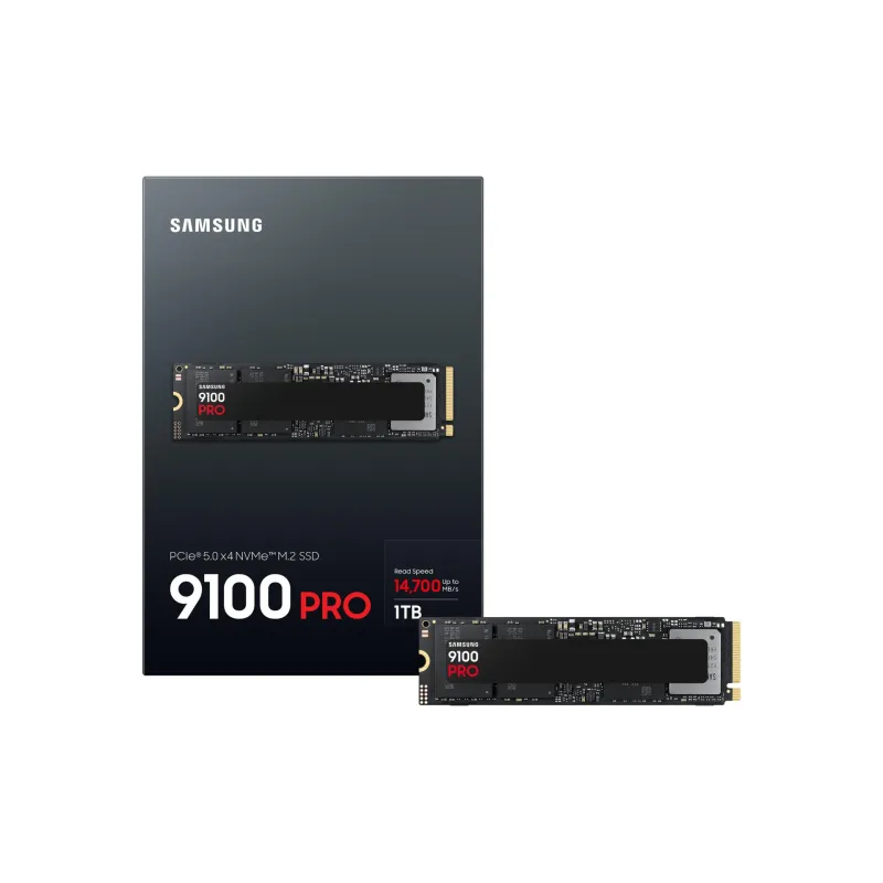 - SAMSUNG 9100 PRO PCIE 5.0 NVME M.2 SSD - 1 TB. SSD CAPACITY: 1 TB, SSD FORM FACTOR: M.2, READ SPEED: 14700 MB/S, WRITE SPEED: 13300 MB/S, COMPONENT FOR: PC/GAME CONSOLE