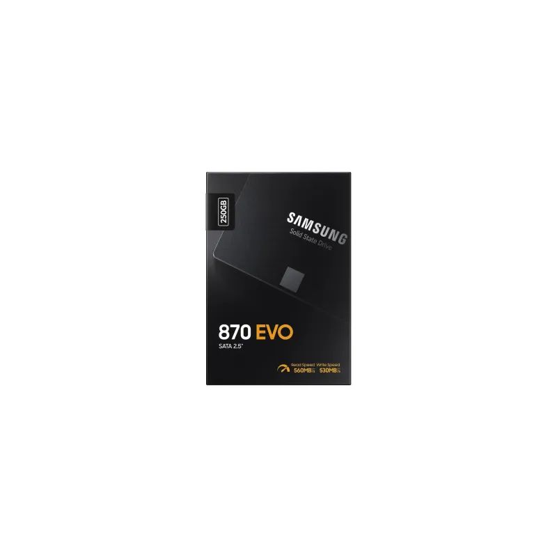 - SAMSUNG 870 EVO. SSD CAPACITY: 250 GB, SSD FORM FACTOR: 2.5", READ SPEED: 560 MB/S, WRITE SPEED: 530 MB/S, DATA TRANSFER RATE: 6 GBIT/S, COMPONENT FOR: PC