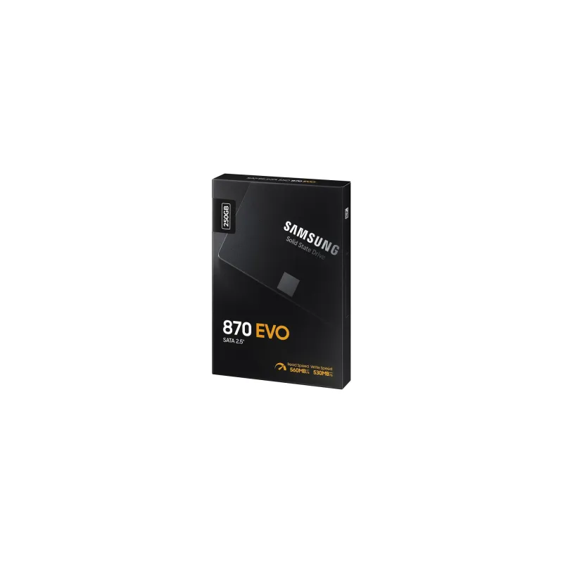 - SAMSUNG 870 EVO. SSD CAPACITY: 250 GB, SSD FORM FACTOR: 2.5", READ SPEED: 560 MB/S, WRITE SPEED: 530 MB/S, DATA TRANSFER RATE: 6 GBIT/S, COMPONENT FOR: PC