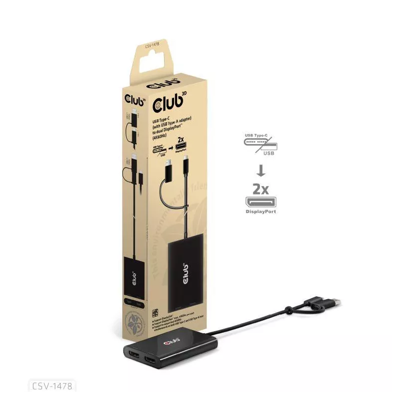 I/O ADAPTER USB-C TO DP/DUAL CSV-1478 CLUB3D