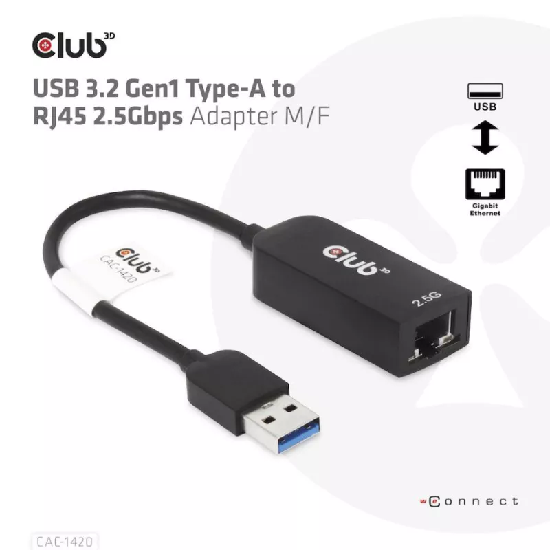 I/O ADAPTER USB3.2 TO RJ45/M/F CAC-1420 CLUB3D