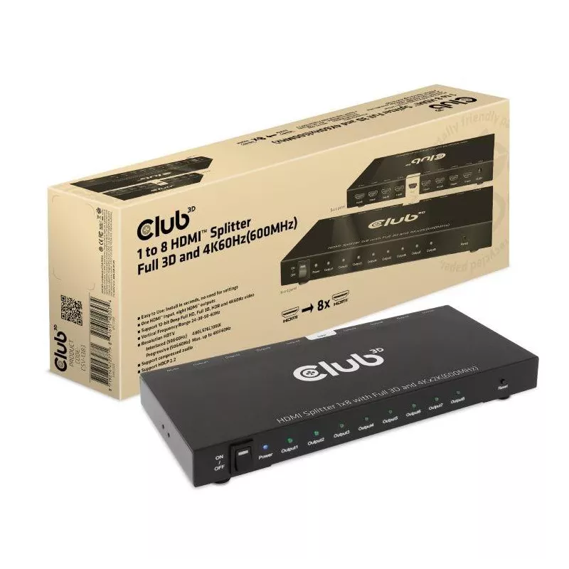 I/O VIDEO SPLITTER HDMI 8PORT/3D 4K 60HZ CSV-1383 CLUB3D