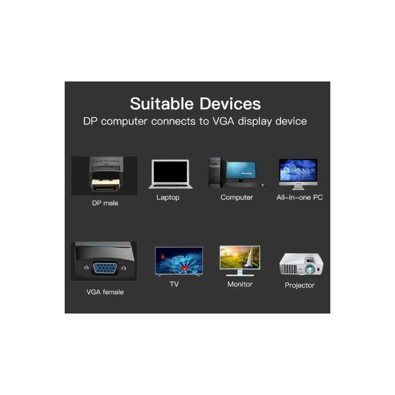 I/O ADAPTER DP TO VGA/0.15M BLACK HBFBB VENTION
