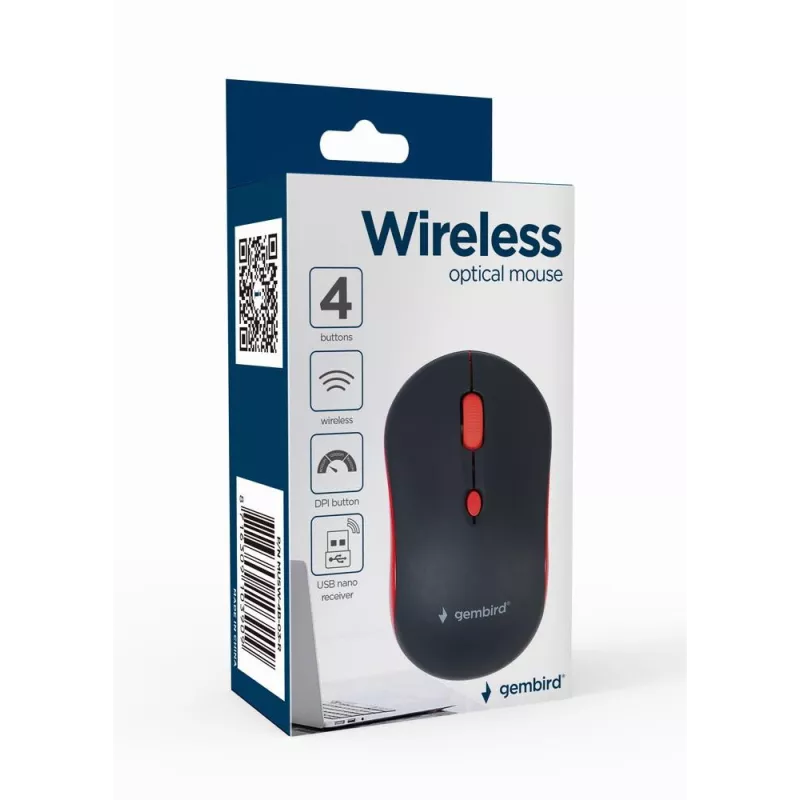- GEMBIRD WIRELESS OPTICAL MOUSE MUSW-4B-03-R 1600DP - MAUS. FORM FACTOR: AMBIDEXTROUS. MOVEMENT DETECTION TECHNOLOGY: OPTICAL, DEVICE INTERFACE: RF WIRELESS, MOVEMENT RESOLUTION: 1600 DPI, BUTTONS TYPE: PRESSED BUTTONS, BUTTONS QUANTITY: 4, SCROLL TYPE: WH
