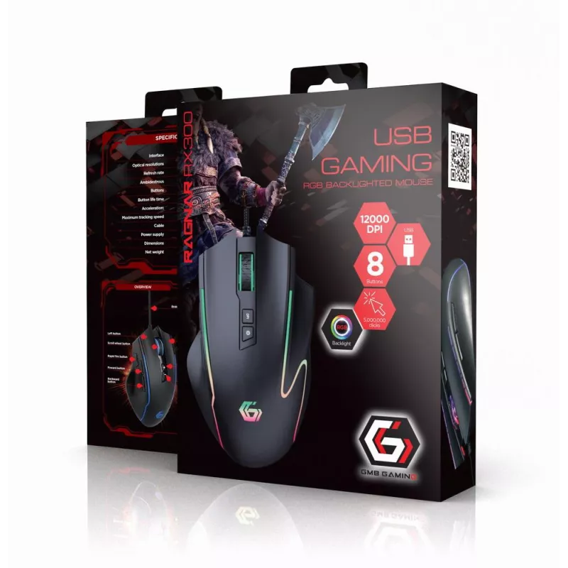 - GEMBIRD MUSG-RAGNAR-RX300. FORM FACTOR: RIGHT-HAND. DEVICE INTERFACE: USB TYPE-A, MOVEMENT RESOLUTION: 12000 DPI, BUTTONS QUANTITY: 7, SCROLL TYPE: WHEEL, ACCELERATION (MAX): 20 G. POWER SOURCE: CABLE. PRODUCT COLOUR: BLACK
