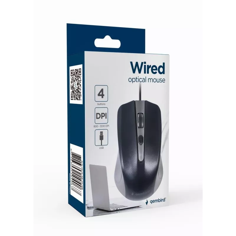 - GEMBIRD MUS-4B-01-GB. FORM FACTOR: RIGHT-HAND. MOVEMENT DETECTION TECHNOLOGY: OPTICAL, DEVICE INTERFACE: USB TYPE-A, MOVEMENT RESOLUTION: 1200 DPI, BUTTONS TYPE: PRESSED BUTTONS, BUTTONS QUANTITY: 4, SCROLL TYPE: WHEEL. POWER SOURCE: CABLE. WORKS ON ANY S