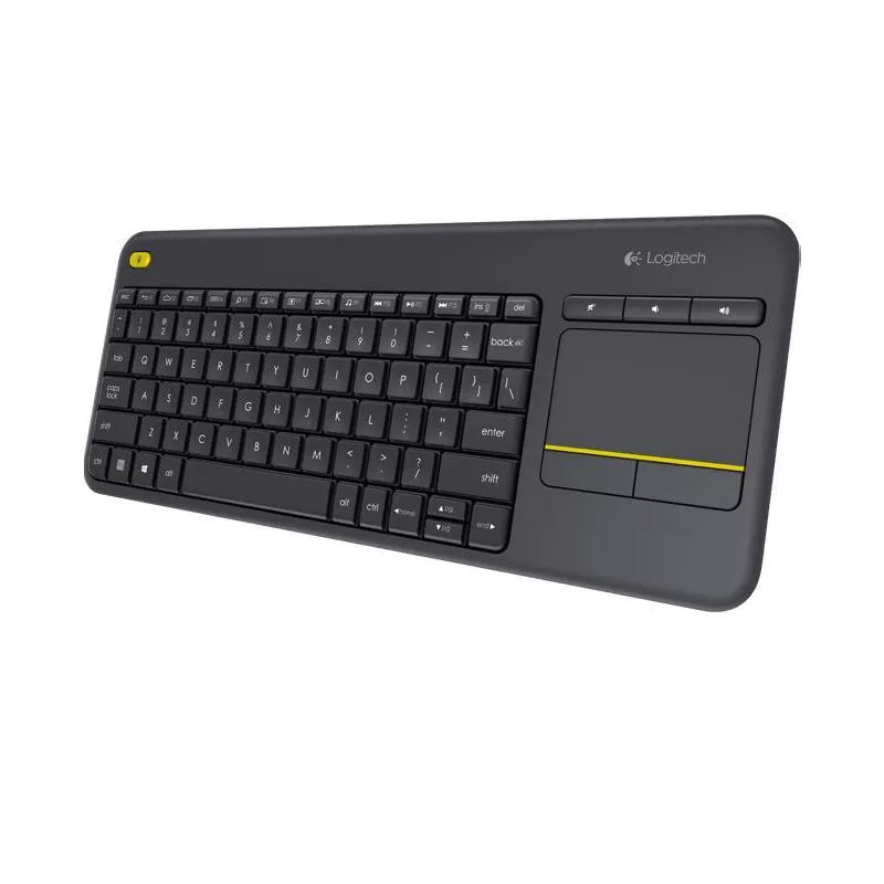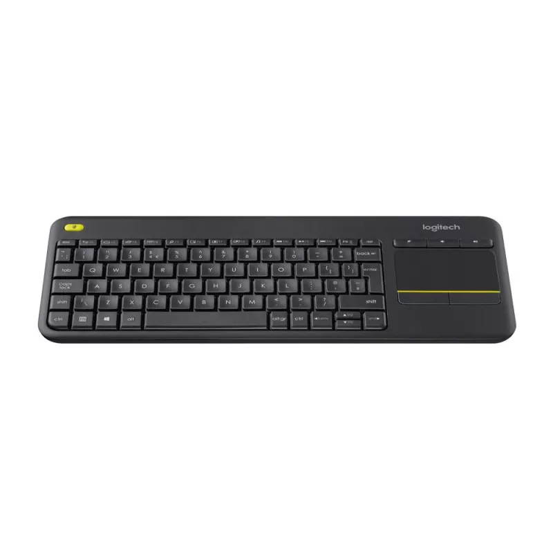 - LOGITECH WIRELESS TOUCH KEYBOARD K400 PLUS. KEYBOARD FORM FACTOR: MINI. KEYBOARD STYLE: STRAIGHT. CONNECTIVITY TECHNOLOGY: WIRELESS, DEVICE INTERFACE: RF WIRELESS, KEYBOARD LAYOUT: QWERTY, RECOMMENDED USAGE: UNIVERSAL. PRODUCT COLOUR: BLACK