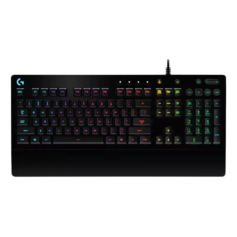 - LOGITECH G G213 PRODIGY GAMING KEYBOARD. KEYBOARD FORM FACTOR: FULL-SIZE (100%). KEYBOARD STYLE: STRAIGHT. CONNECTIVITY TECHNOLOGY: WIRED, DEVICE INTERFACE: USB, KEYBOARD LAYOUT: QWERTY. BACKLIGHT TYPE: RGB LED, WRIST REST. CABLE LENGTH: 1.8 M. RECOMMENDE