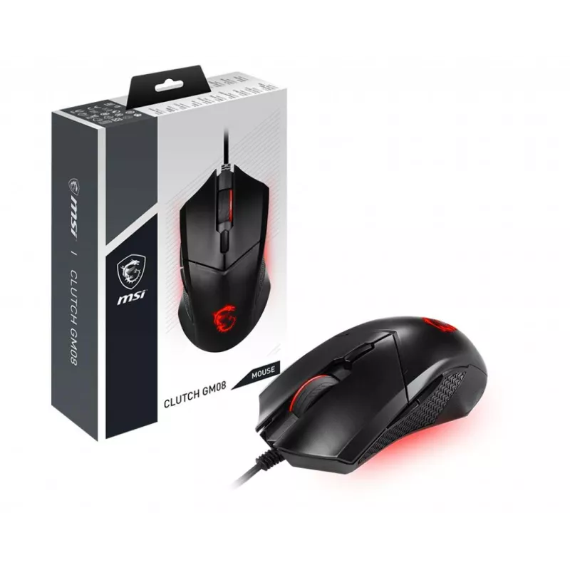 - MSI CLUTCH GM08 OPTICAL GAMING MOUSE '4200 DPI OPTICAL SENSOR, 6 PROGRAMMABLE BUTTON, SYMMETRICAL DESIGN, DURABLE SWITCH WITH 10+ MILLION CLICKS, WEIGHT ADJUSTABLE, RED LED'. FORM FACTOR: AMBIDEXTROUS. MOVEMENT DETECTION TECHNOLOGY: OPTICAL, DEVICE INTERF