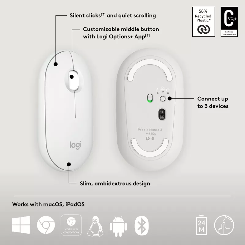 - LOGITECH 910-007013. FORM FACTOR: AMBIDEXTROUS. MOVEMENT DETECTION TECHNOLOGY: OPTICAL, DEVICE INTERFACE: RF WIRELESS + BLUETOOTH, MOVEMENT RESOLUTION: 4000 DPI, BUTTONS TYPE: PRESSED BUTTONS, BUTTONS QUANTITY: 3, SCROLL TYPE: WHEEL. POWER SOURCE: BATTERI