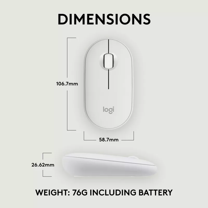 Device interface RF Wireless + Bluetooth , Purpose Travel , Optical , 4000 DPI , Scroll type Wheel , 3xButtons quantity , White , Power source batteries , Weight 76 g