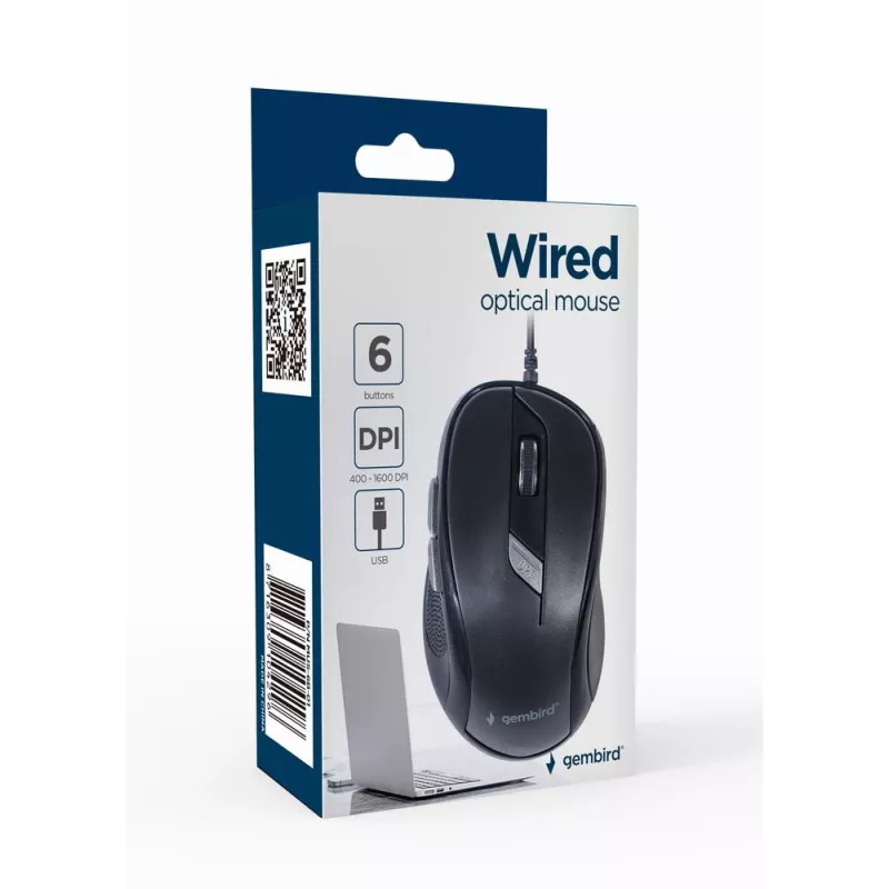 - GEMBIRD MUS-6B-01. FORM FACTOR: AMBIDEXTROUS. MOVEMENT DETECTION TECHNOLOGY: OPTICAL, DEVICE INTERFACE: USB TYPE-A, MOVEMENT RESOLUTION: 1600 DPI, BUTTONS TYPE: PRESSED BUTTONS, BUTTONS QUANTITY: 6, SCROLL TYPE: WHEEL. POWER SOURCE: CABLE. PRODUCT COLOUR: