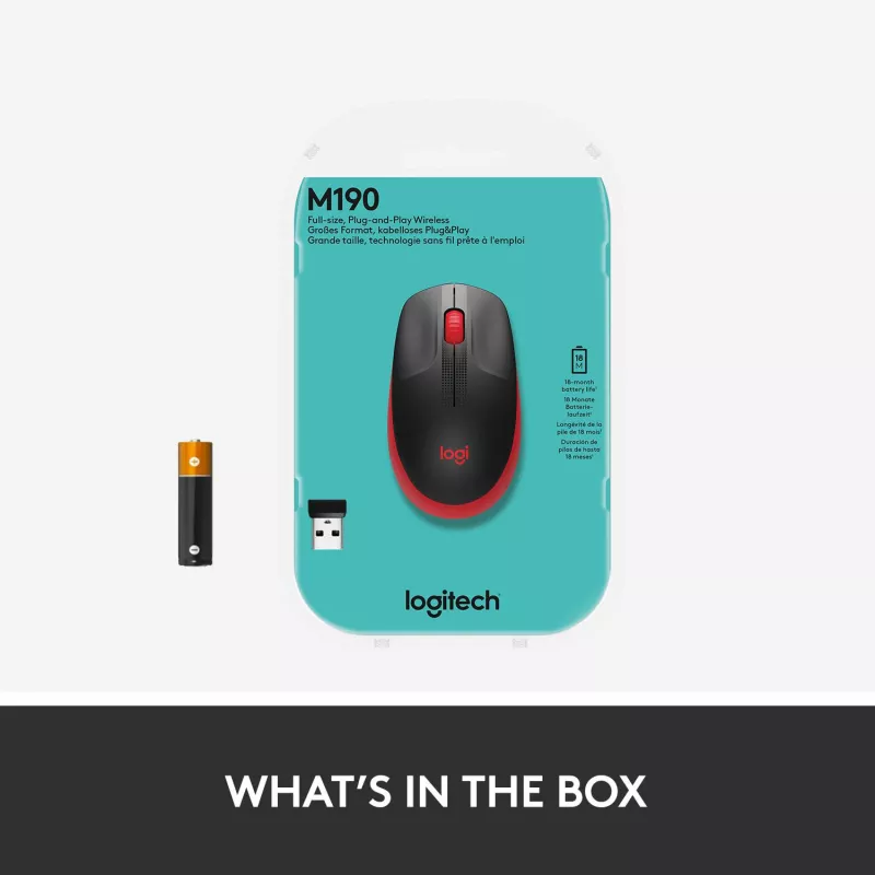 MOUSE USB OPTICAL WRL M190/RED 910-005908 LOGITECH