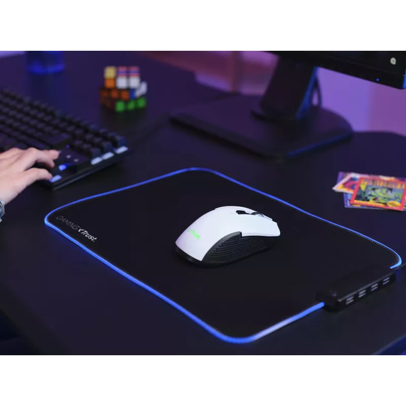 - TRUST GXT 923W YBAR. FORM FACTOR: RIGHT-HAND. MOVEMENT DETECTION TECHNOLOGY: OPTICAL, DEVICE INTERFACE: RF WIRELESS, MOVEMENT RESOLUTION: 7200 DPI, BUTTONS TYPE: PRESSED BUTTONS, BUTTONS QUANTITY: 6, SCROLL TYPE: WHEEL, ACCELERATION (MAX): 15 G. POWER SOU