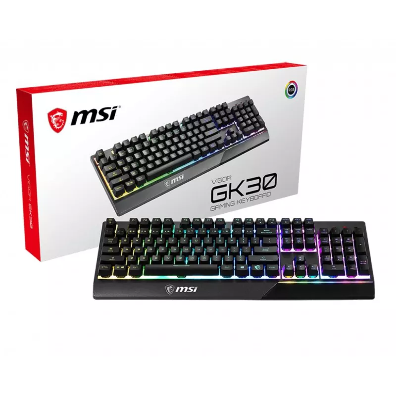 - MSI VIGOR GK30. KEYBOARD FORM FACTOR: FULL-SIZE (100%). KEYBOARD STYLE: STRAIGHT. CONNECTIVITY TECHNOLOGY: WIRED, DEVICE INTERFACE: USB, KEYBOARD KEY SWITCH: MECHANICAL, KEYBOARD LAYOUT: QWERTY. BACKLIGHT TYPE: RGB LED. CABLE LENGTH: 1.8 M. RECOMMENDED US