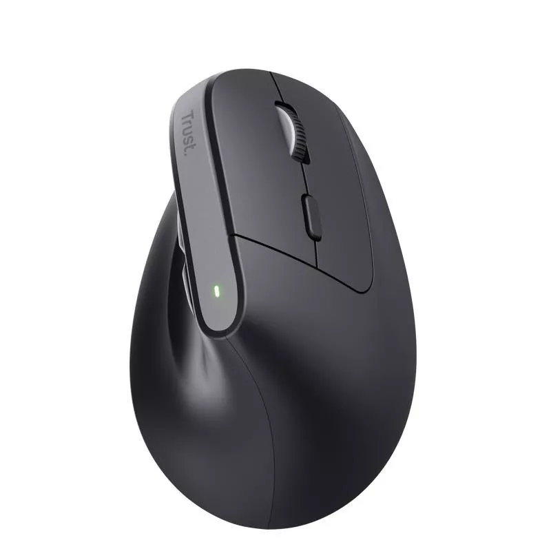 - TRUST BAYO+. FORM FACTOR: RIGHT-HAND, VERTICAL DESIGN. MOVEMENT DETECTION TECHNOLOGY: OPTICAL, DEVICE INTERFACE: RF WIRELESS + BLUETOOTH, MOVEMENT RESOLUTION: 2400 DPI, BUTTONS QUANTITY: 6, SCROLL TYPE: WHEEL. POWER SOURCE: BATTERIES. WORKS ON ANY SURFACE