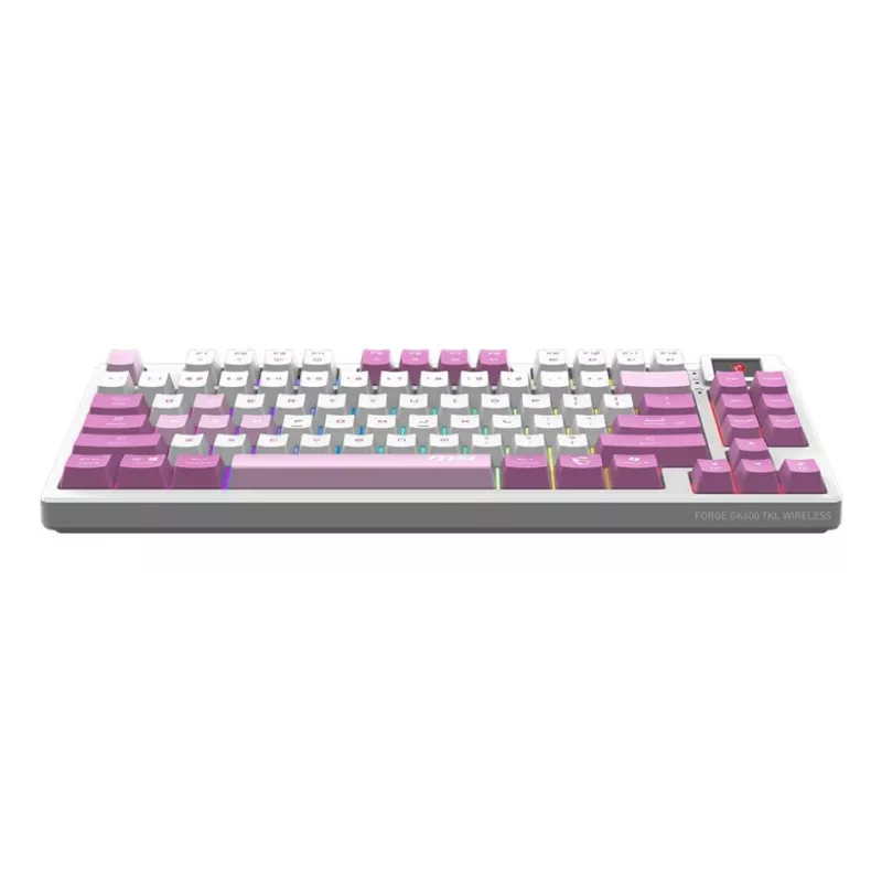 - MSI FORGE GK600 TKL WIRELESS VIOLET. KEYBOARD FORM FACTOR: TENKEYLESS (80 - 87%). KEYBOARD STYLE: STRAIGHT. CONNECTIVITY TECHNOLOGY: WIRELESS, DEVICE INTERFACE: USB + BLUETOOTH, KEYBOARD KEY SWITCH: MECHANICAL, KEYBOARD LAYOUT: QWERTY, KEYBOARD NUMBER OF
